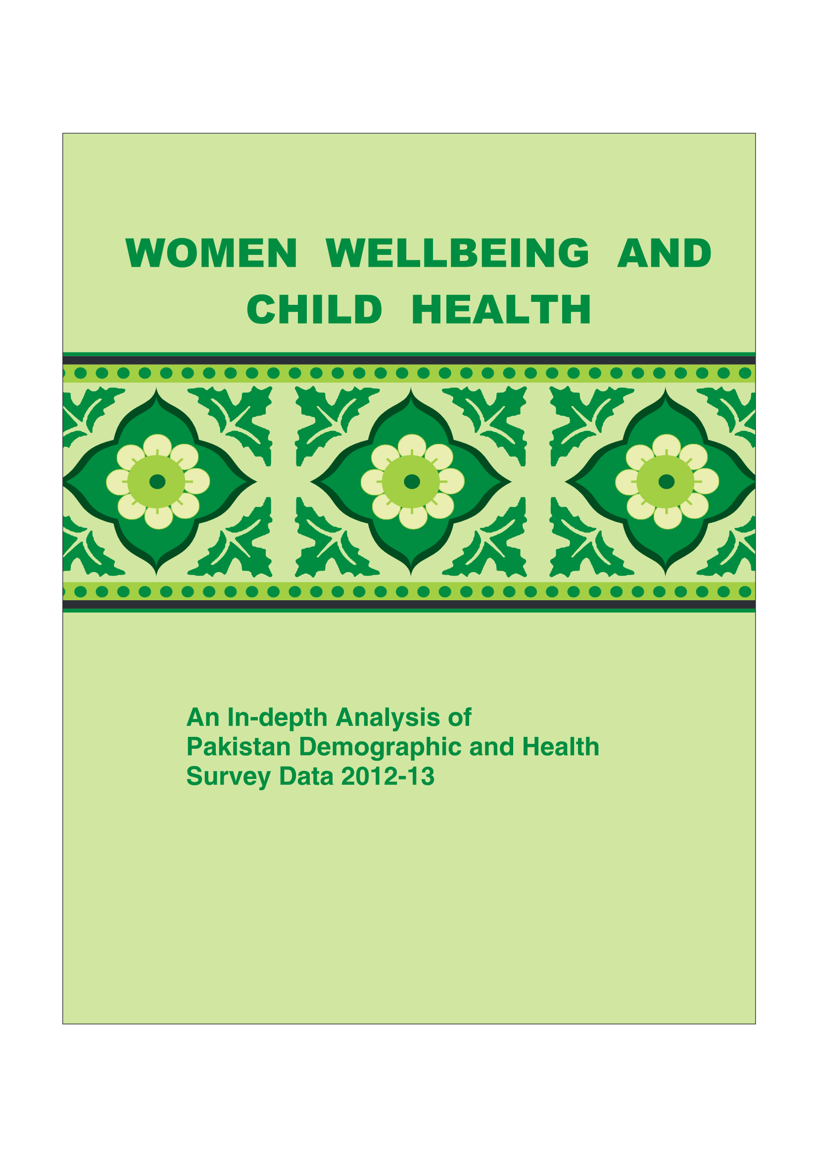 Women Well-being “A Life in Progress” - An In-depth Analysis of Pakistan Demographic Health Survey 2012-13